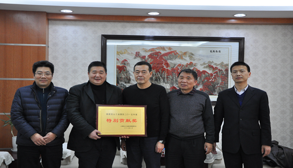 (2016年2月3日,上海)2016年2月1日,海隆作為上海市寶山工業(yè)園區(qū)稅收的最大貢獻者,再次榮獲了上海市寶山工業(yè)園區(qū)2015年度“特別貢獻獎”。上海市寶山工業(yè)園區(qū)黨工委書記楊寶康(左三)為海隆授獎,集團執(zhí)行總裁汪濤代表集團(左二)接受此殊榮。