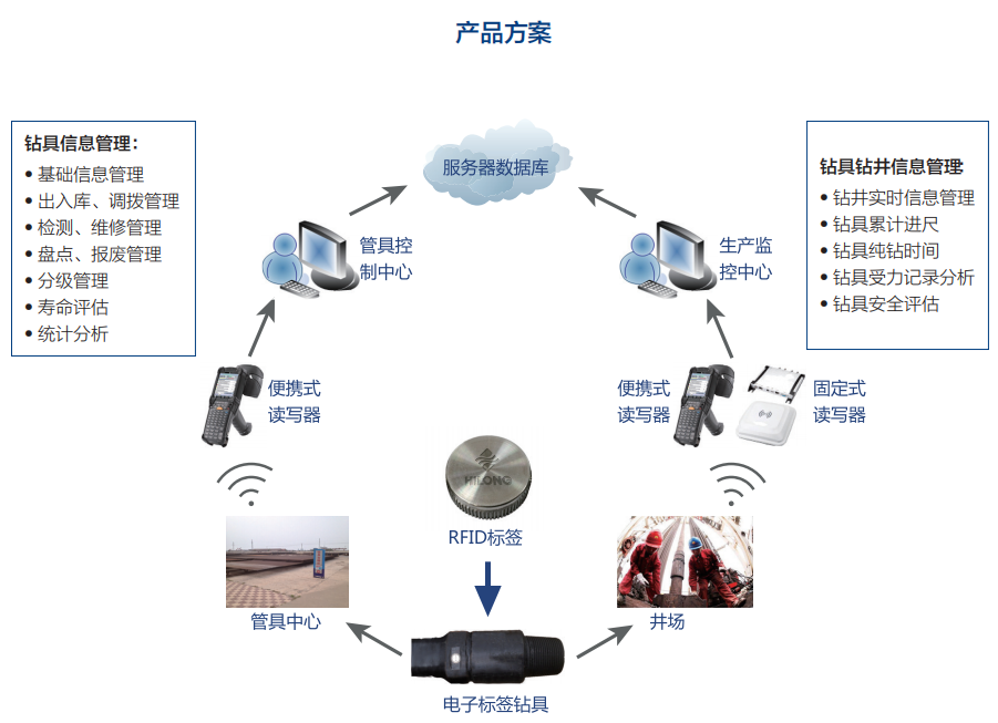 海隆電子標簽鉆具及物聯(lián)網(wǎng)管理系統(tǒng)——通過每根鉆具產(chǎn)品上安裝無線射頻識別(RFID)標簽,使其擁有獨一無二的“電子身份證”,結合智能讀寫設備和物聯(lián)網(wǎng)管理系統(tǒng),高效、精確地實現(xiàn)鉆具生產(chǎn)、出入庫、調撥、使用、維修、檢測、報廢等全生命周期的管理。
